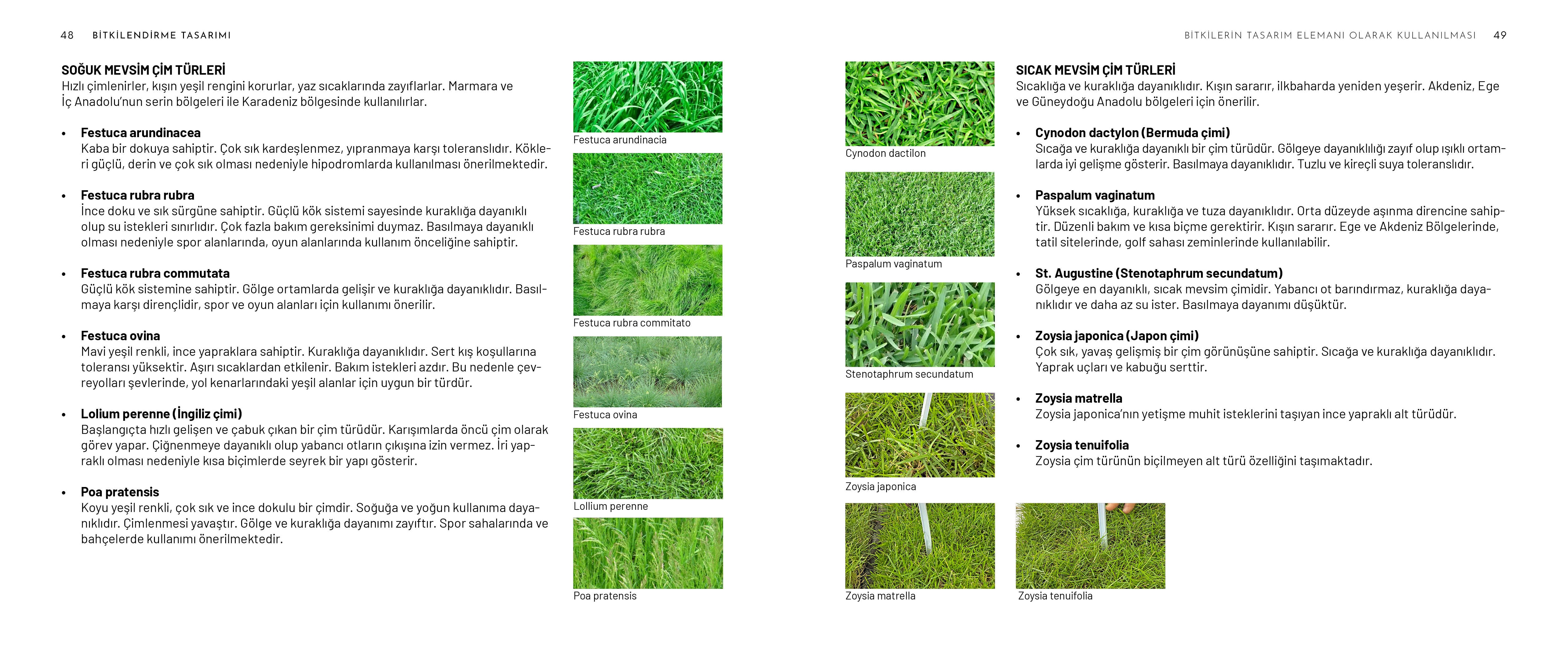 Yayın hazırlıkları ve grafik tasarımı Peyzaj Yüksek Mimarı Çağla Yıldız tarafından yapılan “Bitkilendirme Tasarımı” kitabı aşağıdaki ana bölümlerden oluşuyor: