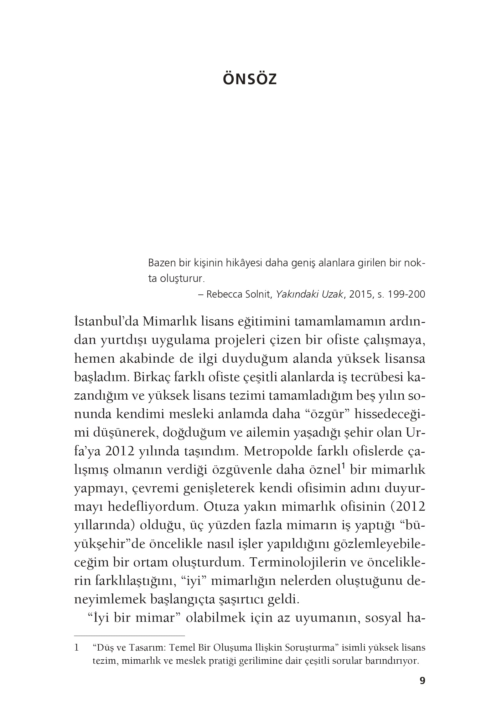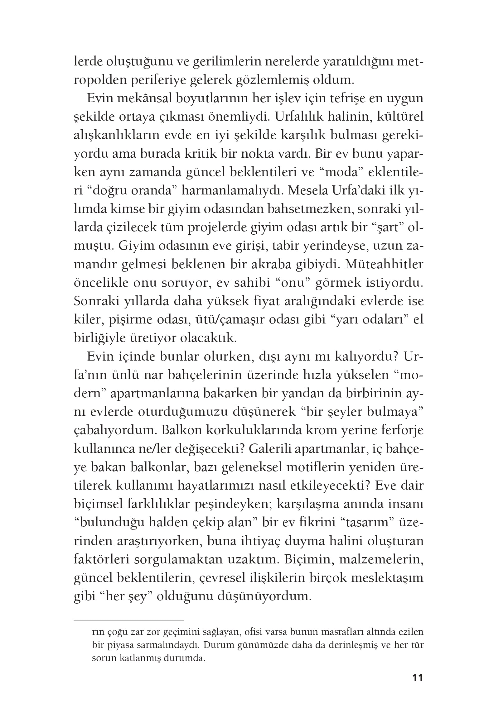 başladığımda ise, kentin periferisinde bir apartmanda yaşıyordum artık. Üniversite sınavını kazanarak İstanbul’da bir yurt odasında yaşamaya başladım; mezun oldum ve Çapa’da kardeşimle yaşadığımız bir evimiz oldu. Beş yılın sonunda Urfa’ya dönüş yaptım ve ailemle tekrar bir apartmanın dubleks katında yaşamaya başladım.”