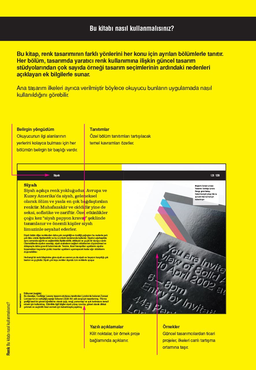 Rengin temel ilkeleri, ışığın nasıl kontrol edildiği, renk bileşimleri ve armonileri kitabın üzerine kurulduğu ilkelerdir. Kitap, Grafik Tasarım, Tipografi ve görsel sanatlar alanlarında eğitim alan öğrenciler için düşünülerek hazırlanmıştır yine de modern tasarımda kullanılan ilkelere yönelik temel bilgi edinmek isteyen herkesin faydalanabileceği bir kaynaktır.