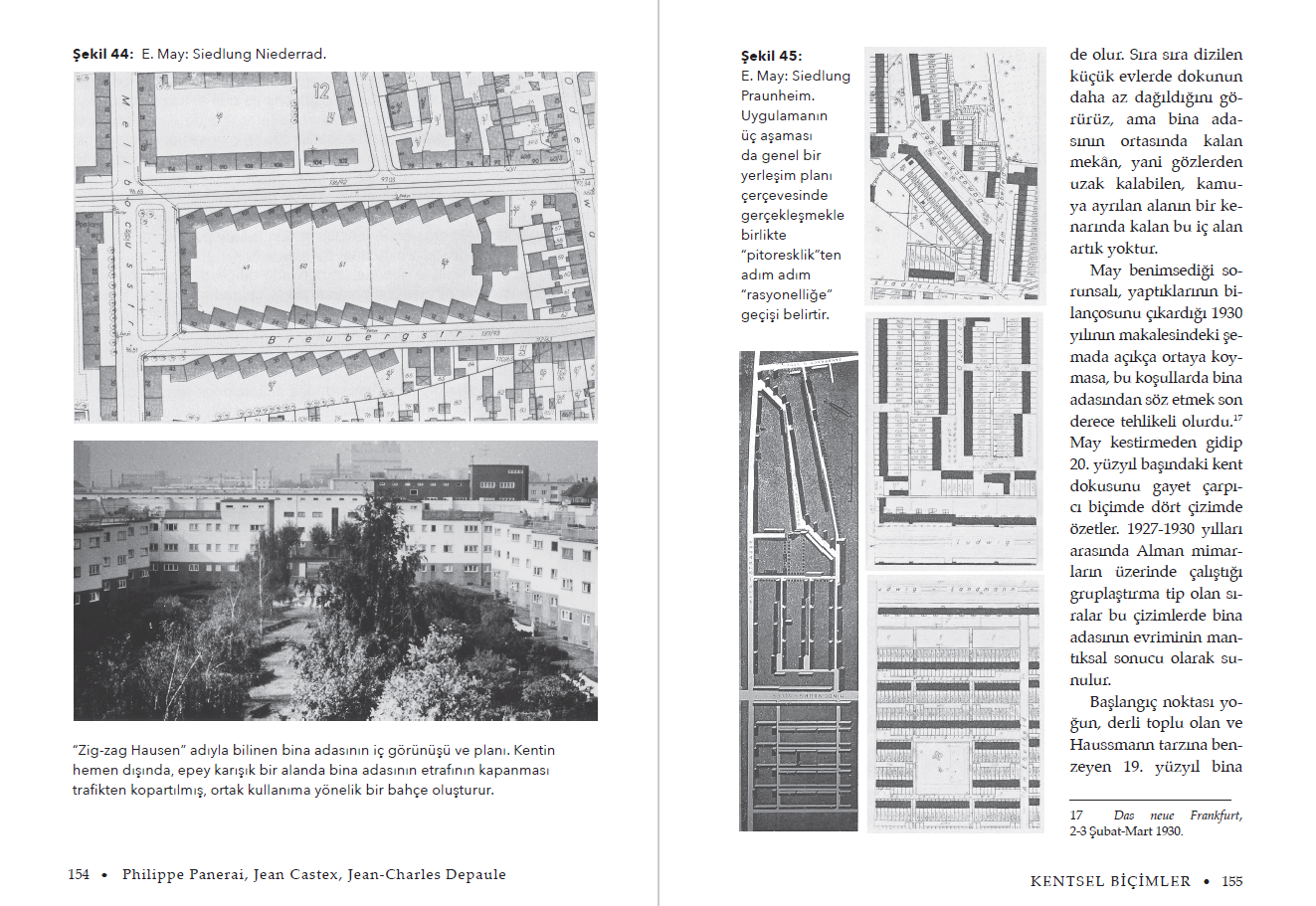 “Böylece bu kitap gayet güzel bir rastlantı sonucu, hakiki bir 20. yüzyıl kentbilimi tarihi halini alır; yüzyılın kentlerinde, Paris, Londra, Amsterdam ve Frankfurt’ta gerçekleştirilen en anlamlı, belki de en tekil çalışmaları kendi ölçekleri temelinde biraraya getirir. Seçtiği örneklerle bir yandan mükemmel bir panorama, bir yandan da kuramsal bir ders ve tartışma konusu oluşturur.”