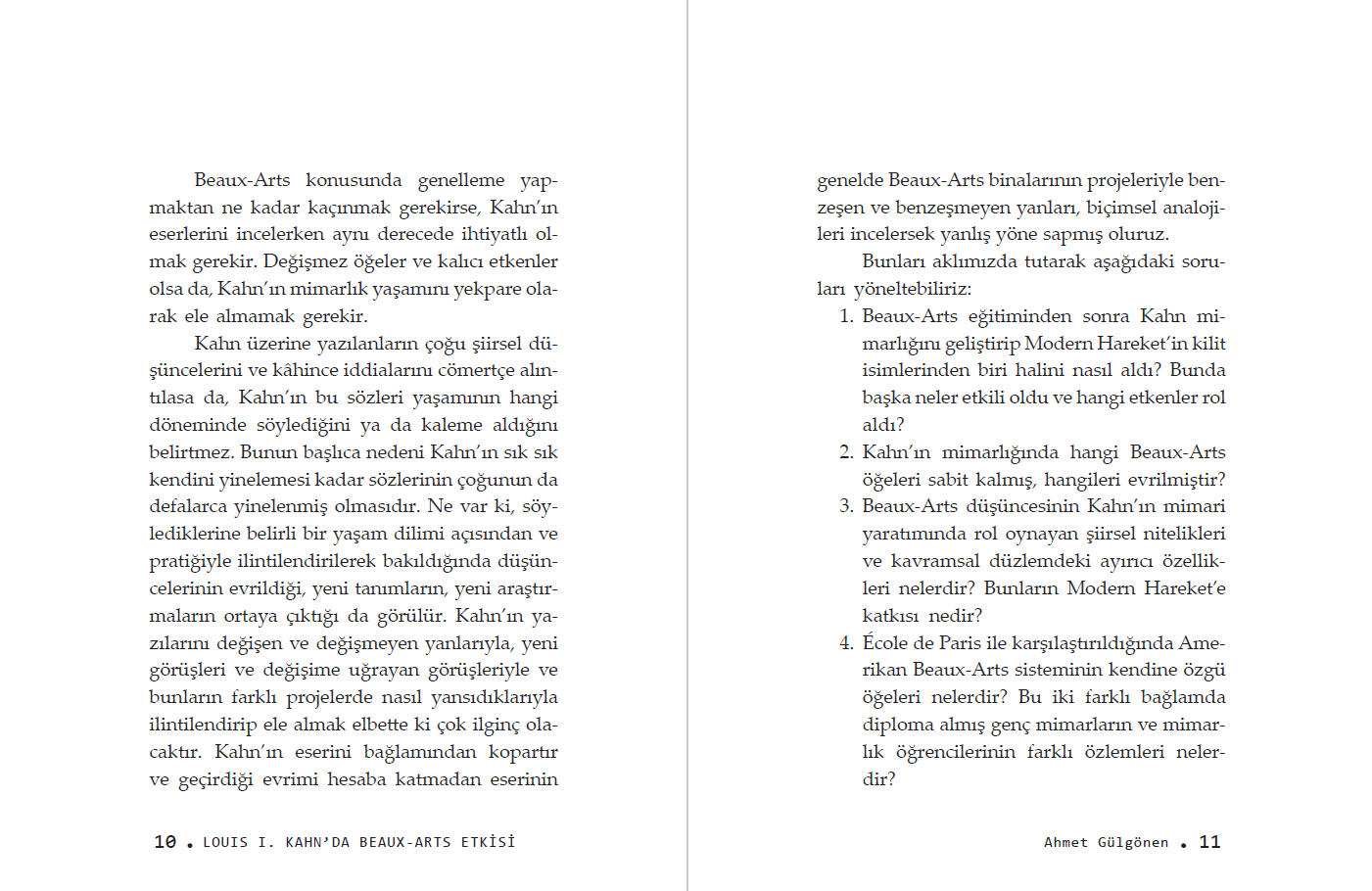 Ahmet Gülgönen École des Beaux-Arts eğitiminin bir süre birlikte çalıştığı Louis Kahn'ın düşüncesini ve pratiğini nasıl etkilediğini sergiliyor.
