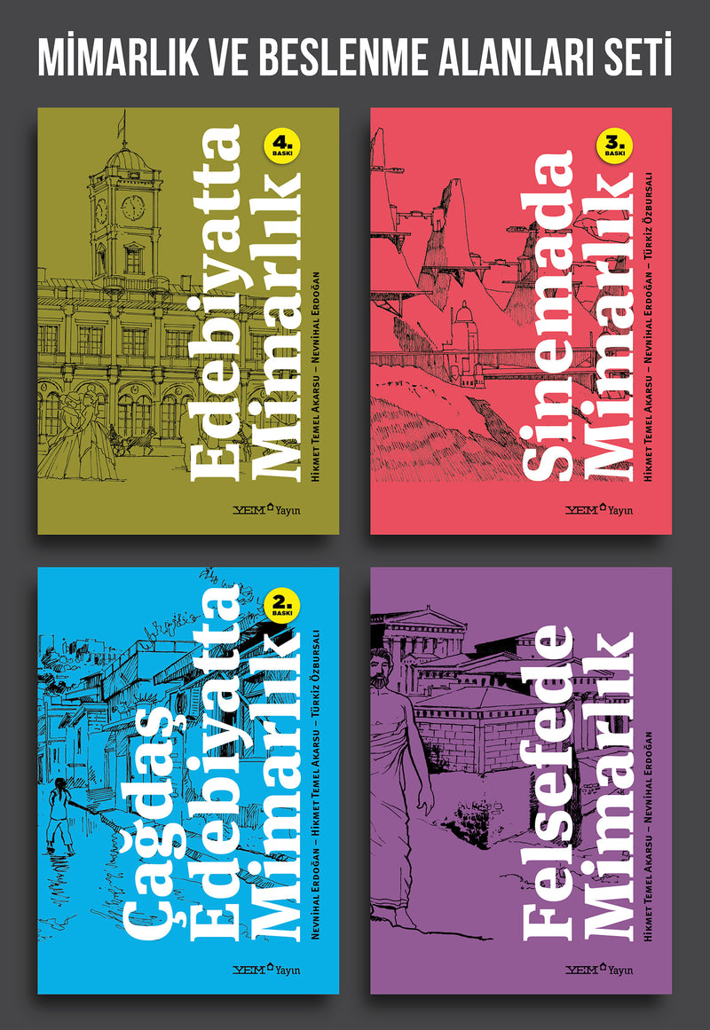YEM Yayın’ın “Mimarlık ve Beslenme Alanları” dizisini oluşturan “Edebiyatta Mimarlık, Sinemada Mimarlık, Çağdaş Edebiyatta Mimarlık, Felsefede Mimarlık, Opera ve Balede Mimarlık” kitaplarının birlikte okunması hem tamamlayıcı olacağı hem de okuyucunun düşsel evrenini zenginleştireceği gerekçesiyle tavsiye edilir.