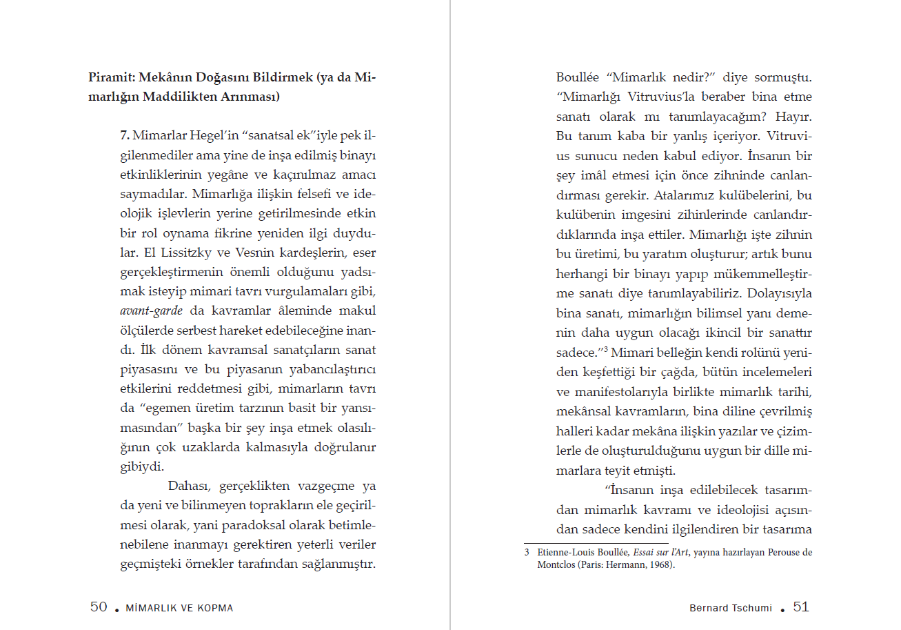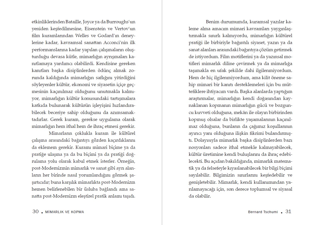Bernard Tschumi mimari söylemin en önemli konularını kışkırtıcı ve duru bir analiz çerçevesinde ele alıyor.