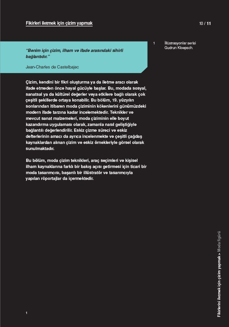 Başarılı bir moda tasarımcısı olmanın en temel şartlarından biri güçlü bir çizim becerisidir. Ancak moda sektöründe yer alan herkes için, çizim tekniklerinin temel ilkelerini bilmek de büyük önem taşır. Jean-Charles de Castelbajec’in sözleriyle: “Çizim, ilham ve ifade arasındaki sihirli bağlantıdır.”
