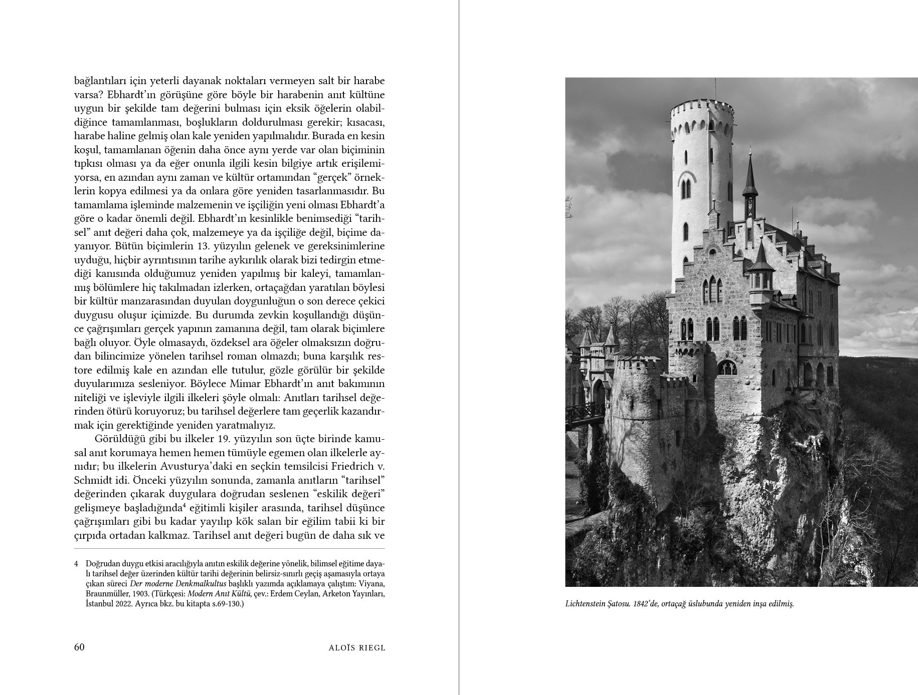 İşte, Georg Dehio'nun 'Doğru olan restore etmek değil, korumaktır' sözlerinin arkasında, üç yüzyıllık bir sürecin Ruskin'de ifadesini bulan düşünsel sonucu var. Bu bakışı 'Modern Anıt Kültü'nde, kendi kavramsallaştırmalarıyla sistemleştiren ise Aloïs Riegl oluyor."