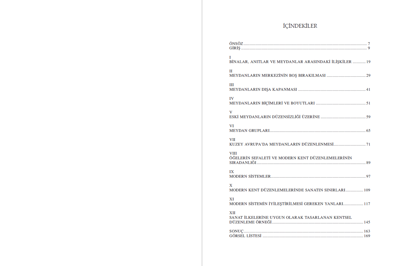 Sanayi devriminin etkisiyle ortaya çıkan kentsel çevrenin çirkinliğinden kaçınabilir miyiz? Toplumlarımızın yaşadığı büyük alt-üst oluşların ortasında çağdaş bir güzellik, güzel bir kent ortamı oluşturabilir miyiz? Eski kentlerin öldüğü kesin, ama sanatsal güzelliğe sahip olmalarını sağlayan estetik ilkeler nelerdir?